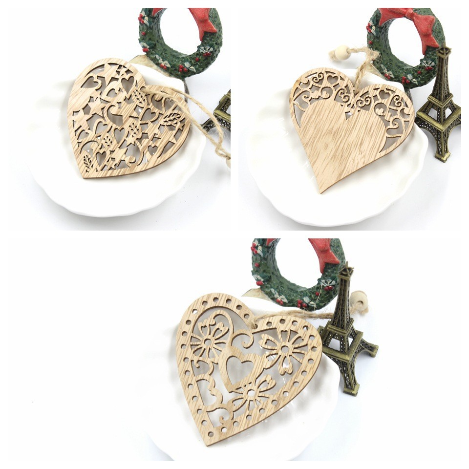 6つ/ロマンチックな透かし彫りの愛の木製のペンダントのハート型はクリスマスの木製工芸品を飾ることを祈っています
