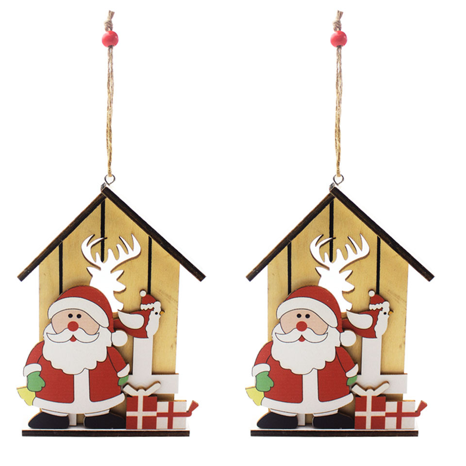 クリスマス山小屋ペンダントサンタクロース木製ペンダントクリスマスツリーペンダント木製工芸品