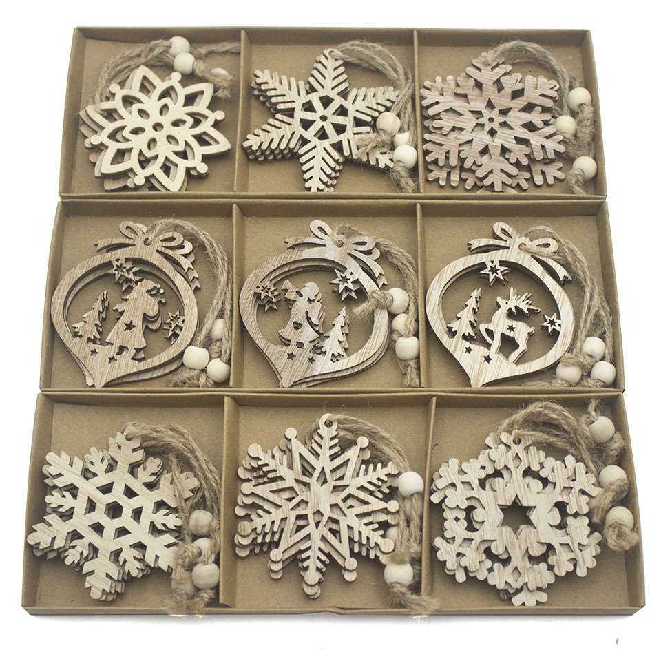 三宮格クリスマス木製ペンダント雪花木製ペンダントクリスマスツリーペンダント木製工芸ギフトセット