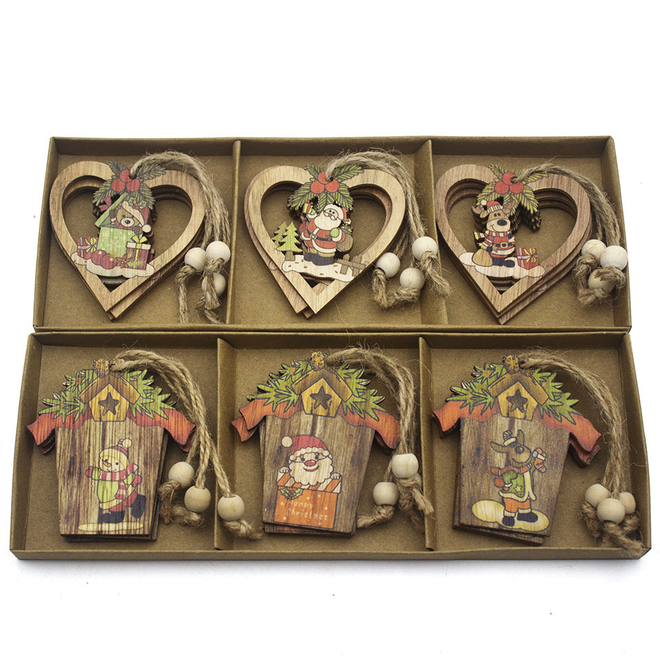 6個/バッグレトロ板クリスマス雪花ヘラジカ木製ペンダントクリスマスツリーペンダント装飾プレゼント木製工芸品