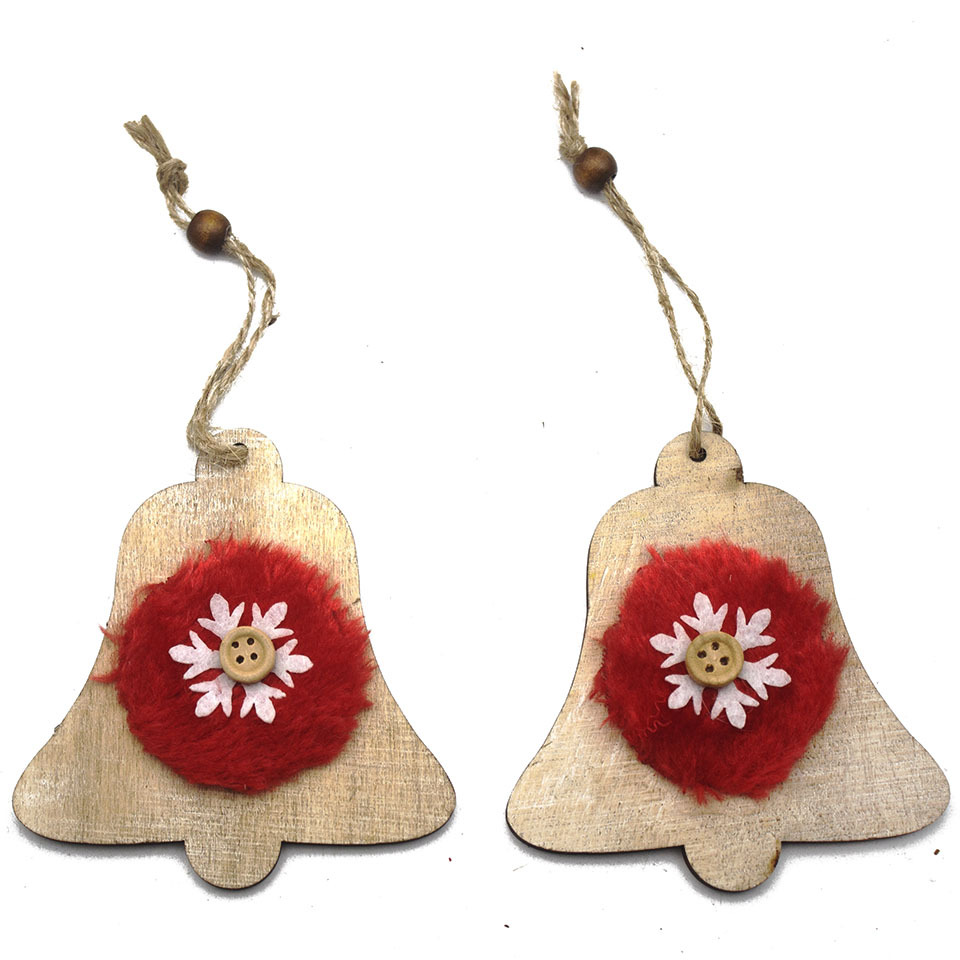 2個/セットかわいいクリスマス鈴ストラップクリスマス木製ペンダントクリスマスツリーペンダント木製工芸品ギフト