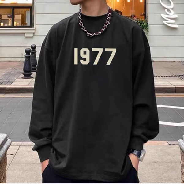 1977長袖袖底シャツfog植毛高街ゆるい卸売り丸襟tシャツ純綿長袖印字tシャツ潮