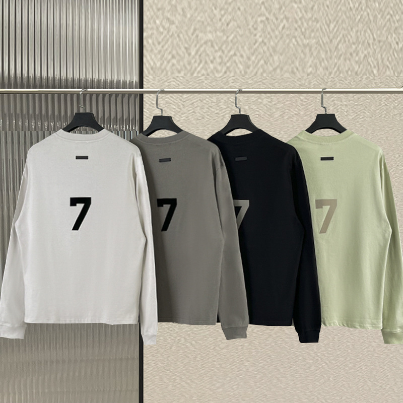 Fog長袖数字7植毛青春クラシックカジュアルtシャツ底シャツ高街ゆるい純綿tシャツ潮男