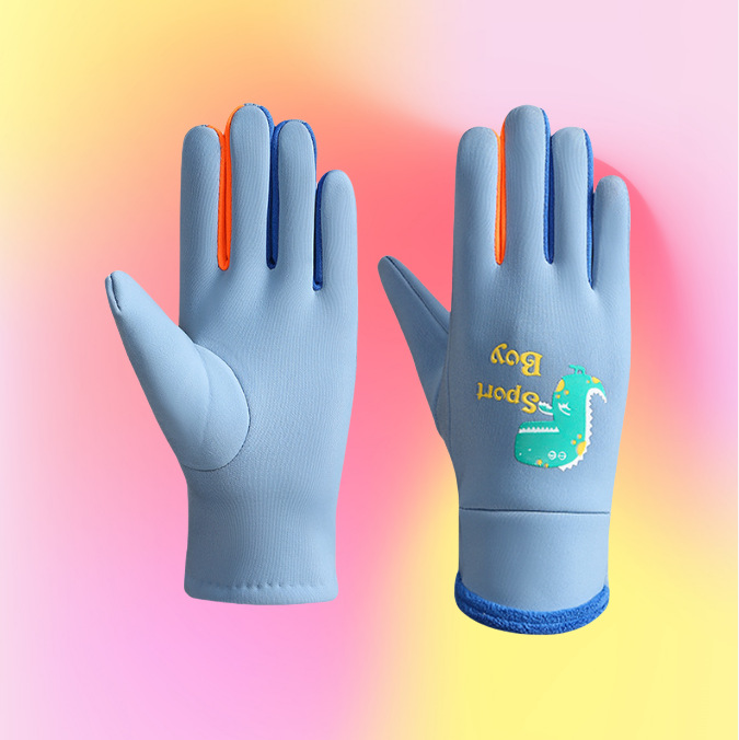 児童手袋秋冬保温男女児童児童ベルベット五本指戸外自転車防風防寒防水手袋