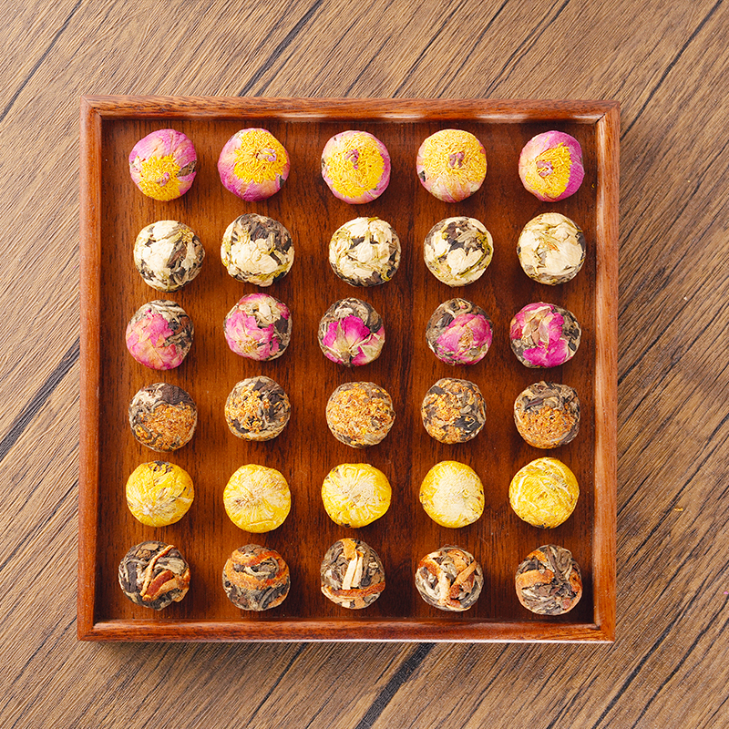 雲南白茶 手作り龍珠クラフト フラワーティーボール ジャスミン バラ キンモクセイ 菊 牡丹 6種のフレーバーミックス