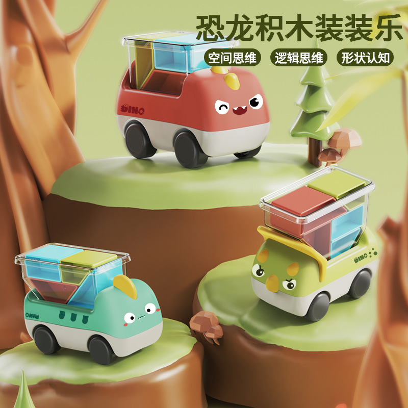 恐竜のトラックの積み木は親子のインタラクティブな楽しみの形を詰めて赤ちゃんの益智の論理の思惟の訓練のおもちゃを認知します。