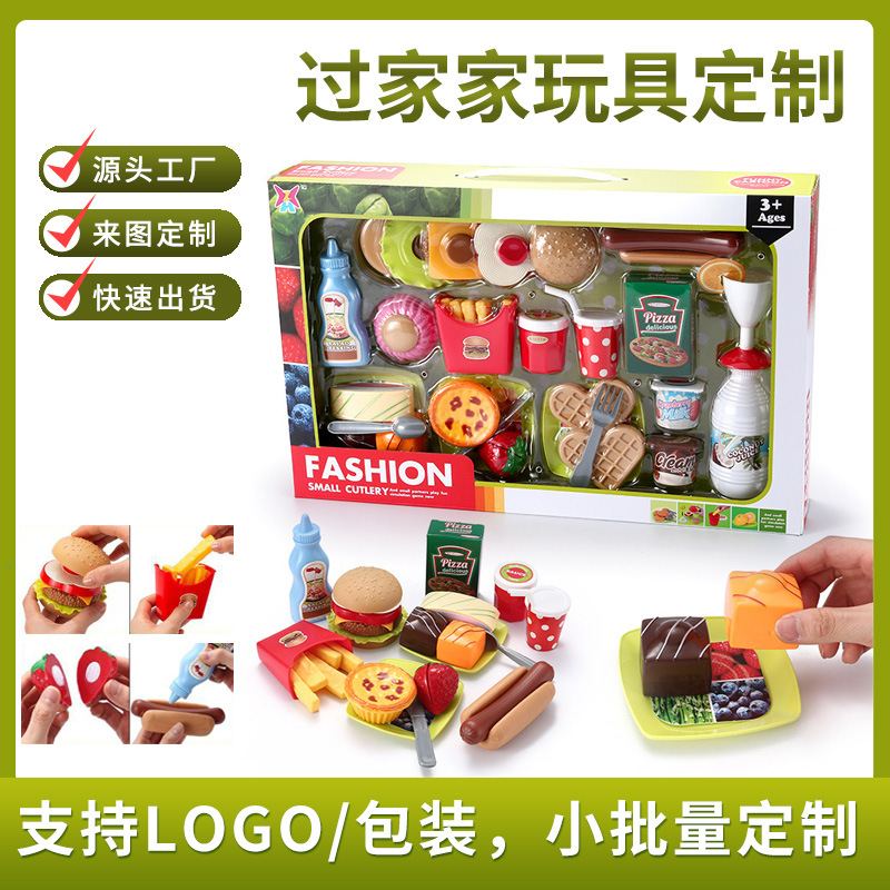 カスタムままごと玩具キッチンシミュレーション果物ピザ牛ステーキサンドイッチdiy取り外し可能な食品玩具