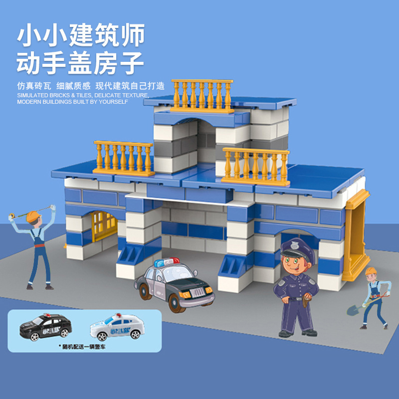 小さな建築家の手作りdiy小屋の泥職人が家を建てる消防警察署の都市模型家のおもちゃ