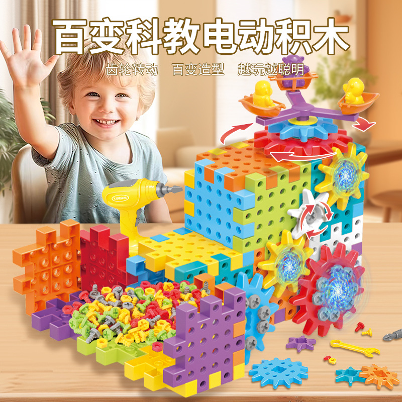 電動DIY科教百変積み木機械歯車連動児童益智早教モザイク粒子積み木玩具