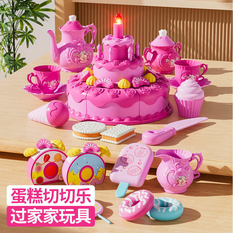 女の子の家を渡るケーキは楽しい赤ちゃんがろうそくの甘い果物diyおもちゃの誕生日プレゼントを吹いている