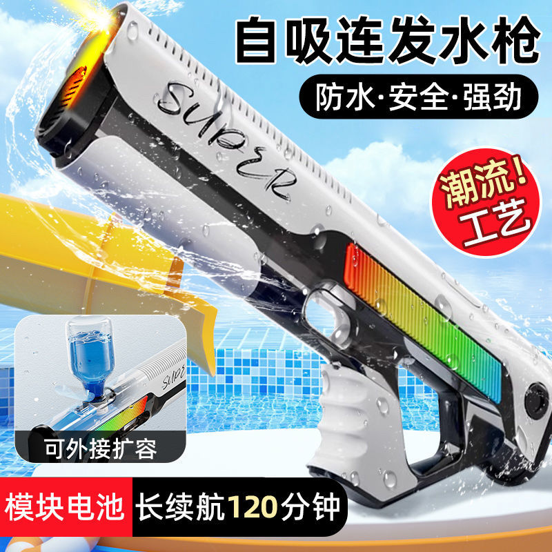 2025新型パルス電動水鉄砲手一体自動吸水大容量高圧連発水鉄砲玩具