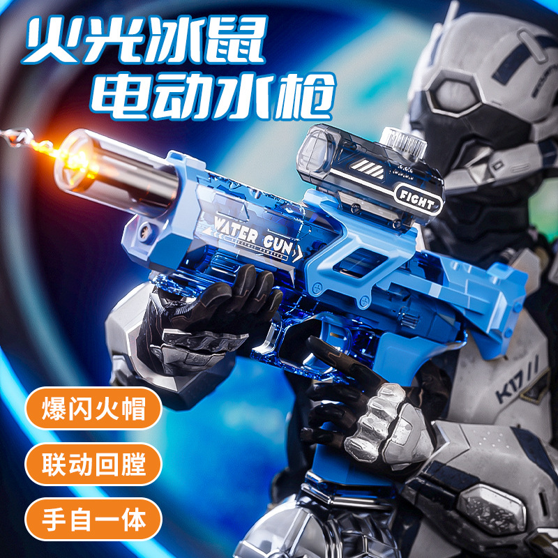 新型噴火氷鼠水鉄砲電動高速連発ランプ付きフラッシュフラッシュ光ファイバー水鉄砲子供用アウトドア玩具