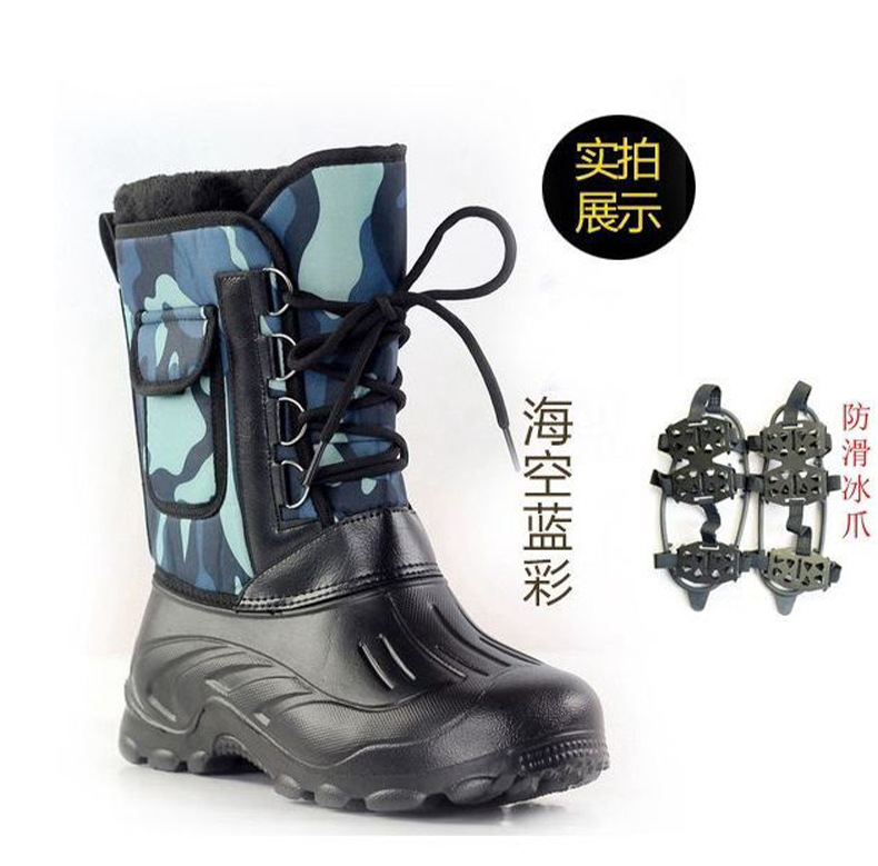 【滑り止め氷爪を含む】冬の屋外にベルベットをつけて防水を厚くする高組迷彩労働保護靴男性防水雪地