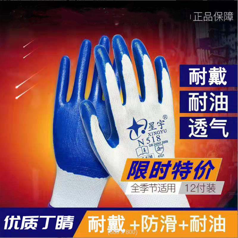 工場の労働保護手袋n518n528ニトリルゴム耐摩耗性防油滑り止め通気工事現場の修理防護手袋
