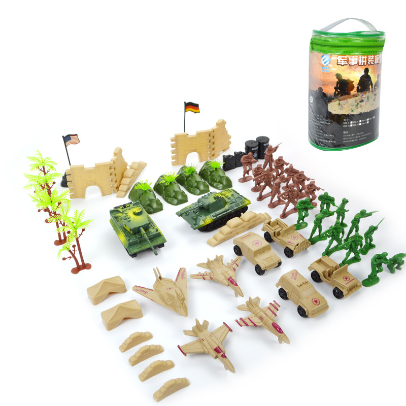 Diy戦車飛行機模型玩具軍事兵人64個の部品シーンに国旗兵人部品がついている