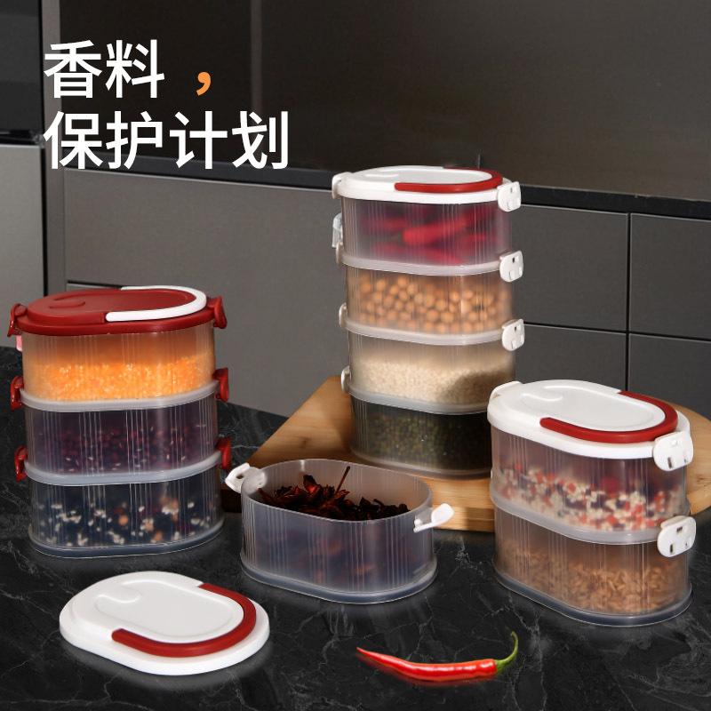 新しい香料の収納箱のネギとニンニクの調味料の缶の家庭用台所は密封箱の貯蔵箱を重ねることができます。