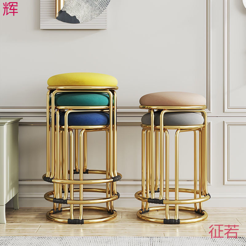 北欧スツールホームモダンシンプルな鉄筋ラウンドスツールダイニングテーブル小さなスツールダイニングテーブル積み重ね可能なライト高級怠惰なベンチ