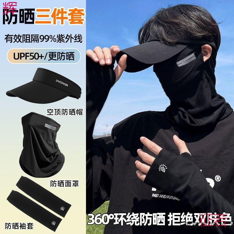 アイスシルクサイクリング日焼け止めマスクメンズ抗UV登山フルフェイスベールメンズアイススリーブ日焼け止め帽子セット