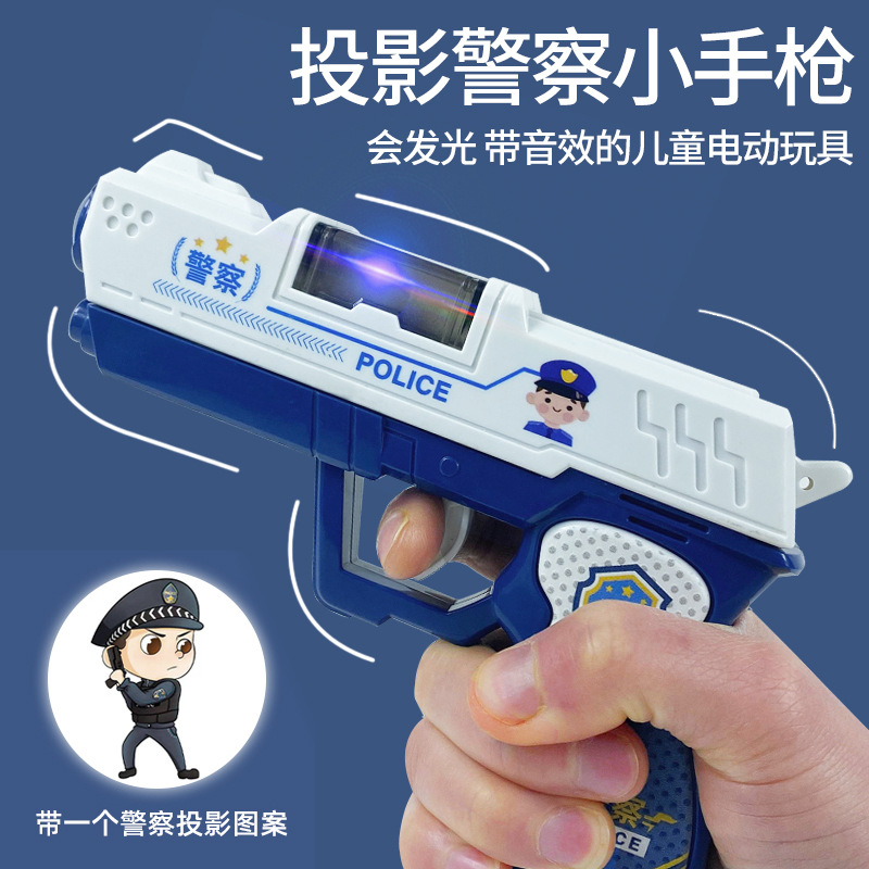 子供投影電動警察音響銃1、2歳の赤ちゃんが男の子の音楽ピストルの子供のおもちゃの銃を投げます。