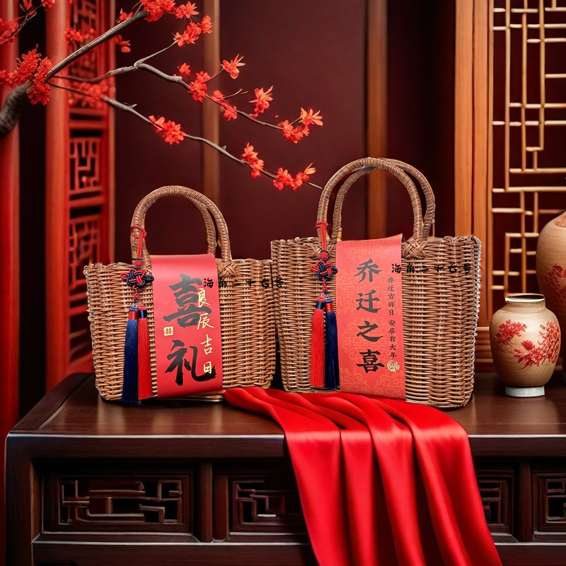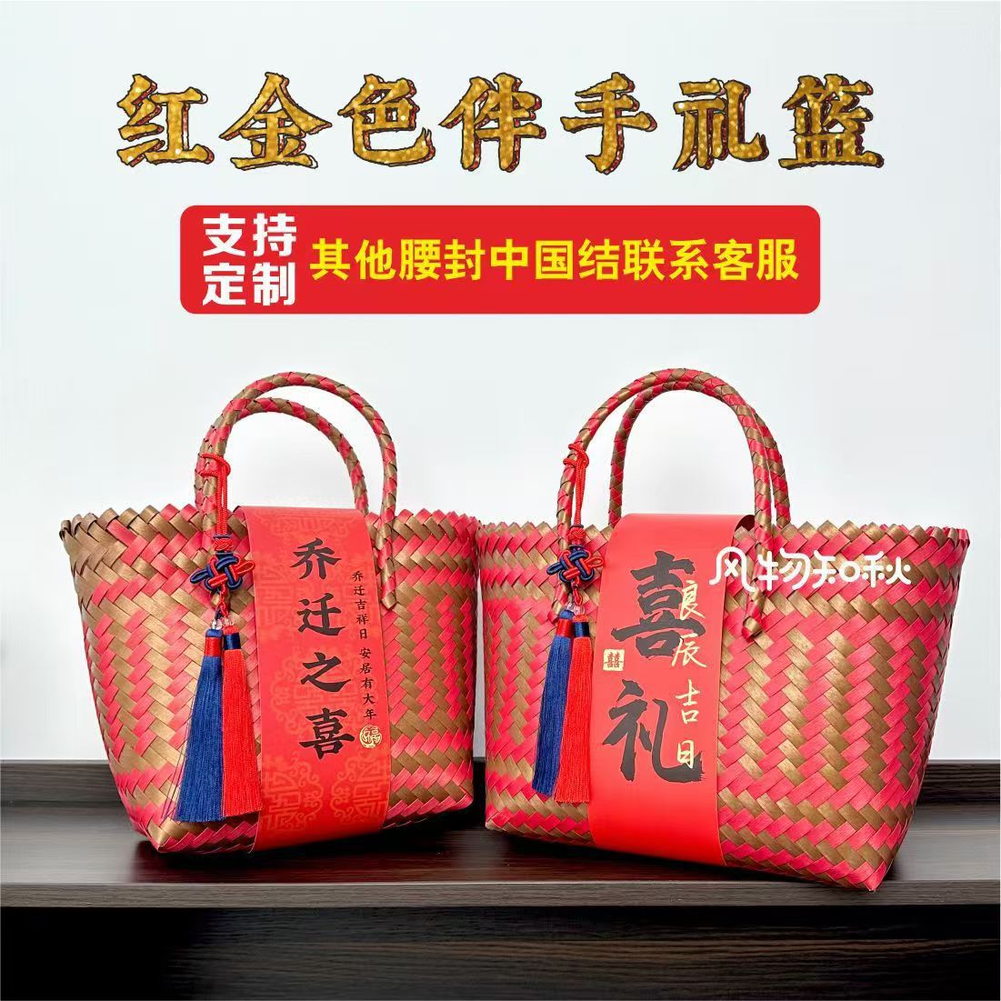 赤金シリーズ結婚祝いギフトバッグ、新築祝い、誕生日ギフトボックス、編み込み式の喜事用バスケット、中国風