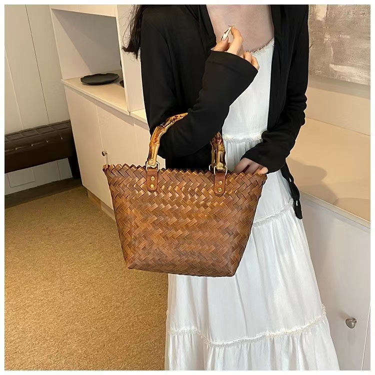 レトロな籐製の団子袋、お土産袋、編み物の野菜かご、買い物かご、収納用レトロ風バスケット