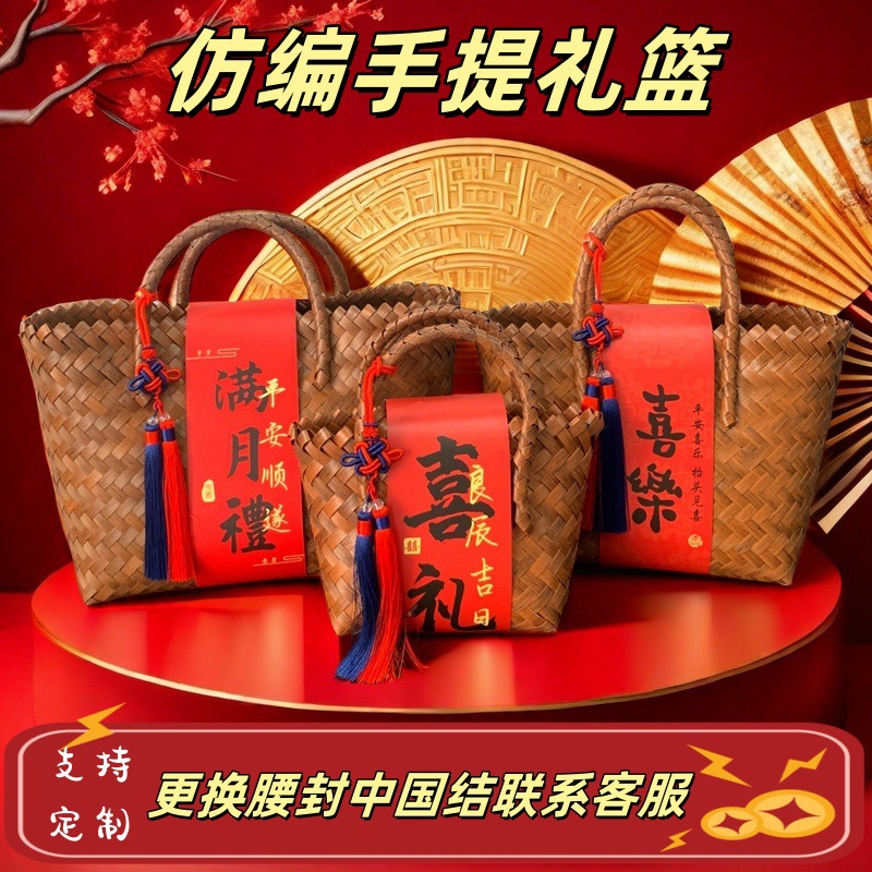 編みバッグ、ギフトバッグ、新築祝い、満月祝い、春節ギフトボックス、編みかご、ギフトバスケット、お祝いギフト、祝賀品