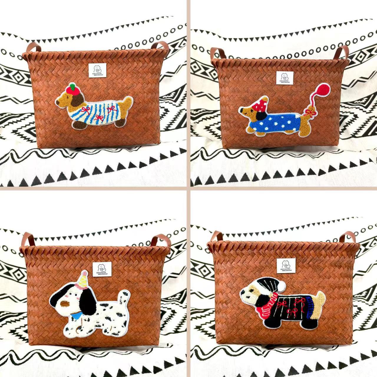 ダックスフント柄の籐製収納バスケット、手編み収納かご、バスルーム、寝室、衣類収納、汚れた服入れ、多機能収納