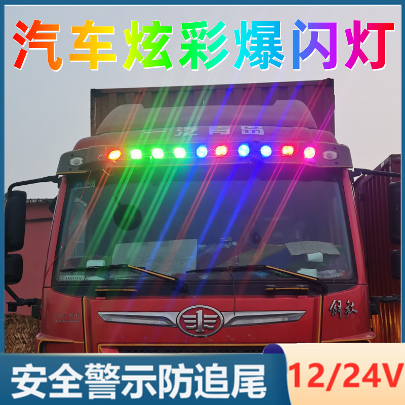 24vトラック中網灯サンシェード七彩フラッシュledランプ12v自動車フラッシュ追突防止警告テールランプ
