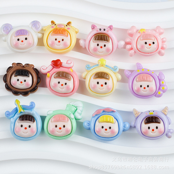 明るい顔の星座の多い妹のdiyクリームの樹脂の部品の漫画の星座の女の子の材料の穴の靴の装飾品