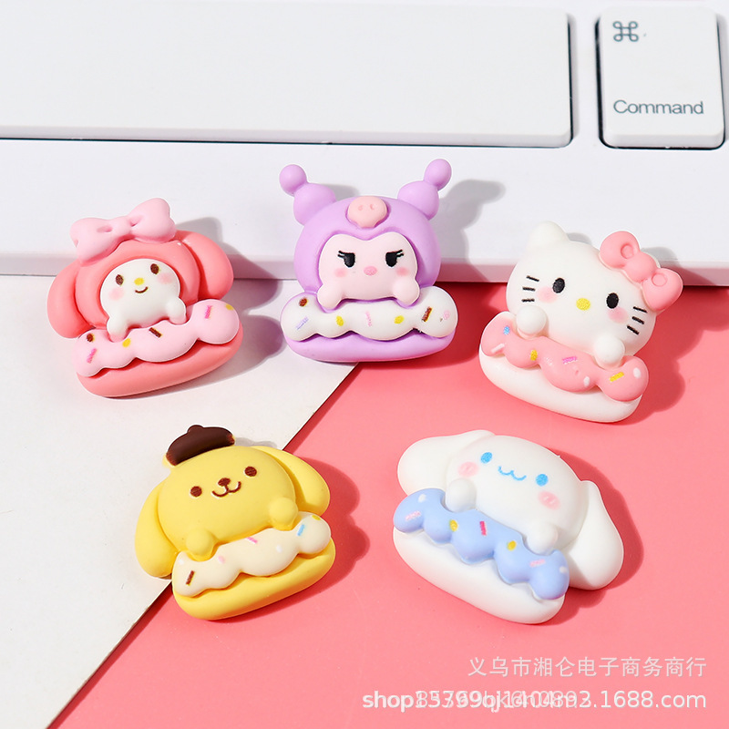 新しい光沢のある油のサンリオシリーズの樹脂部品diyクリームゴムのヘアピン材料の携帯ケースの冷蔵庫のステッカー