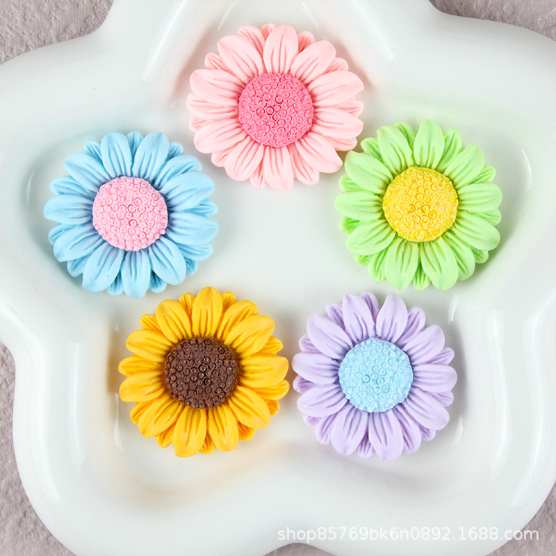 花のヒマワリの太陽の花の手作りのdiyのアクセサリの樹脂の部品のヘアピンの靴のバックルの越境の材料の卸売り