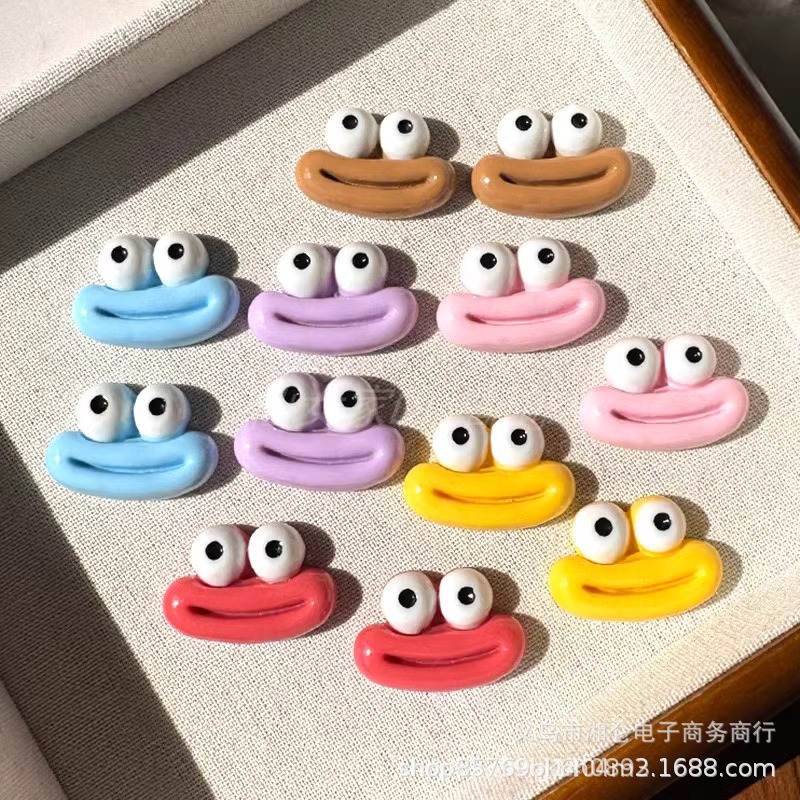 アニメのおかしな中号のソーセージの口の大きい目のカエルの樹脂の部品のdiyのヘアピンの貼るアイデアの服装の靴の帽子の装飾