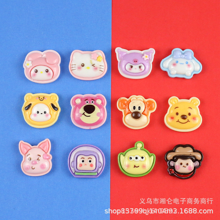 明るい面のサンリオの大きい頭のシリーズの樹脂の部品のdiyのクリームのゴムのヘアピンの材料は携帯電話の携帯電話の扉を包んで卸売りを貼ります。