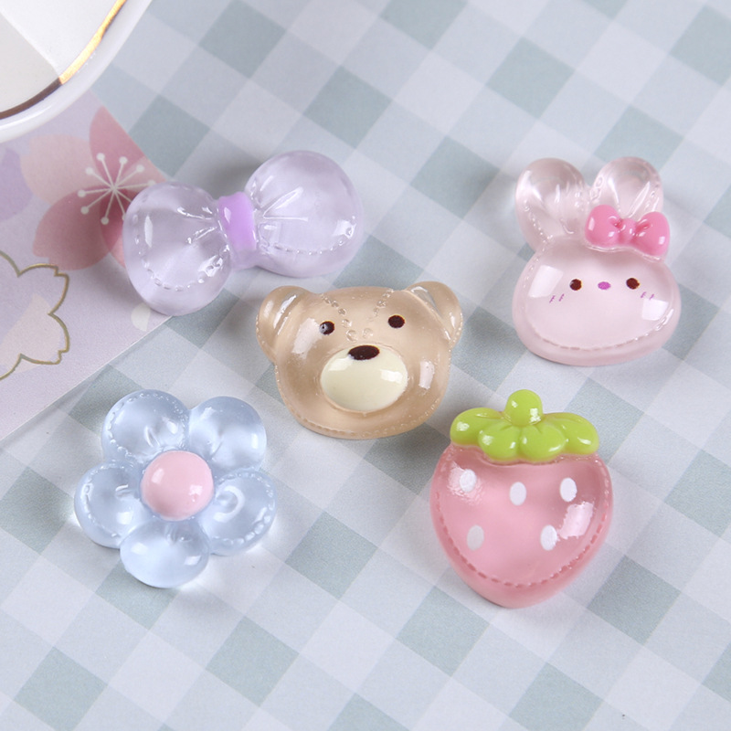 透明クマウサギイチゴ樹脂 diy ジュエリーアクセサリー携帯電話ケース下駄子供のヘアロープパッチ素材