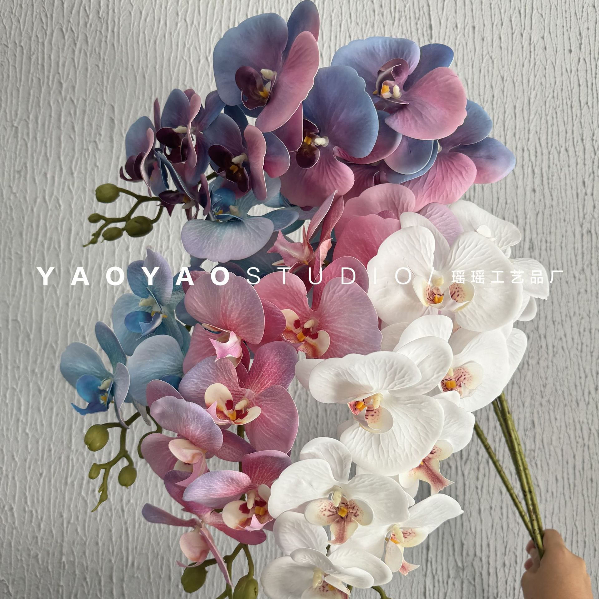 9つの油絵の胡蝶蘭のフィルムの3dはシミュレーションの花の虹色の胡蝶蘭の家庭の見本の板間のショーウインドーの装飾を印刷します。