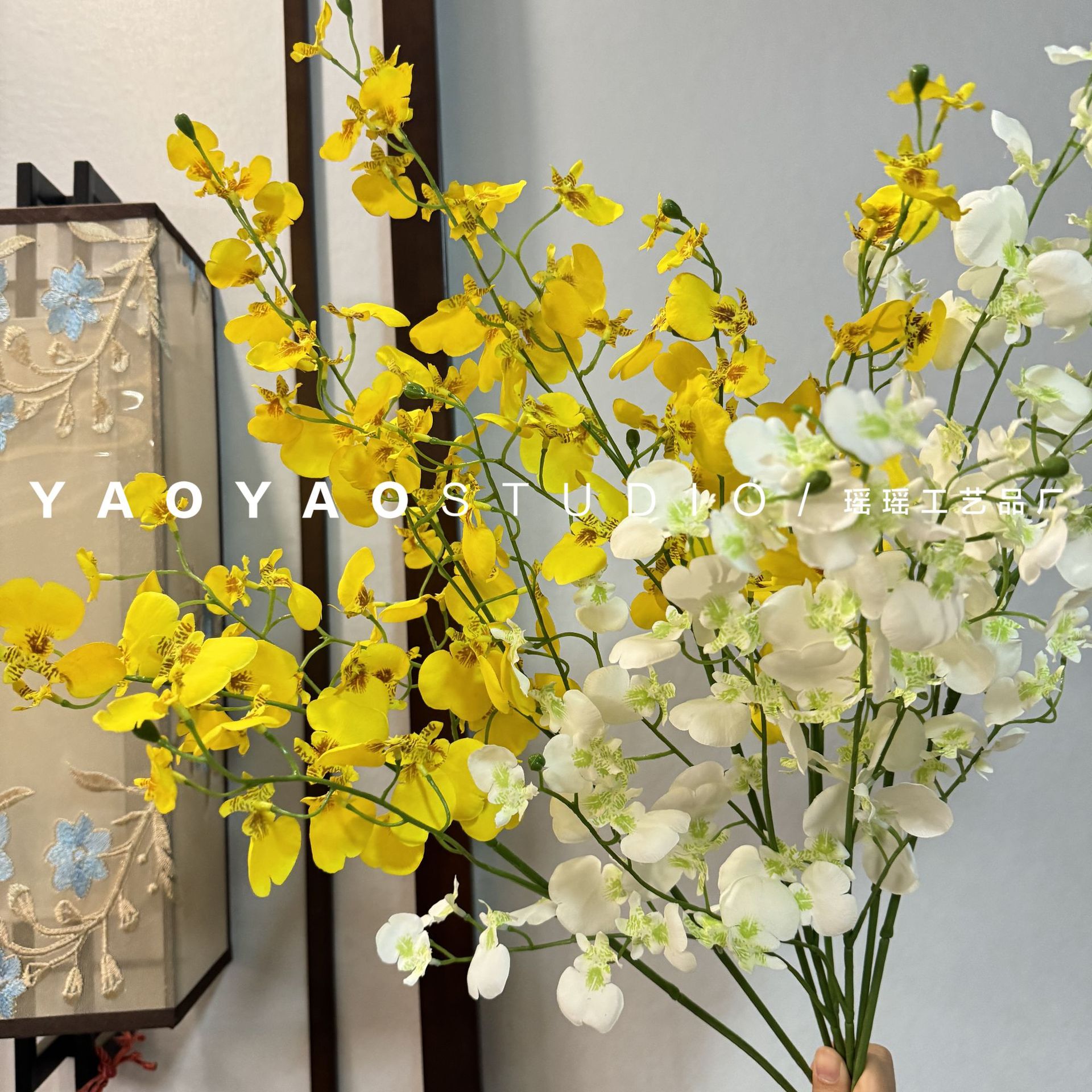 シミュレーションダンス蘭のデスクトップ装飾花秋色ダンス蘭の家庭装飾に花卉撮影道具を置く