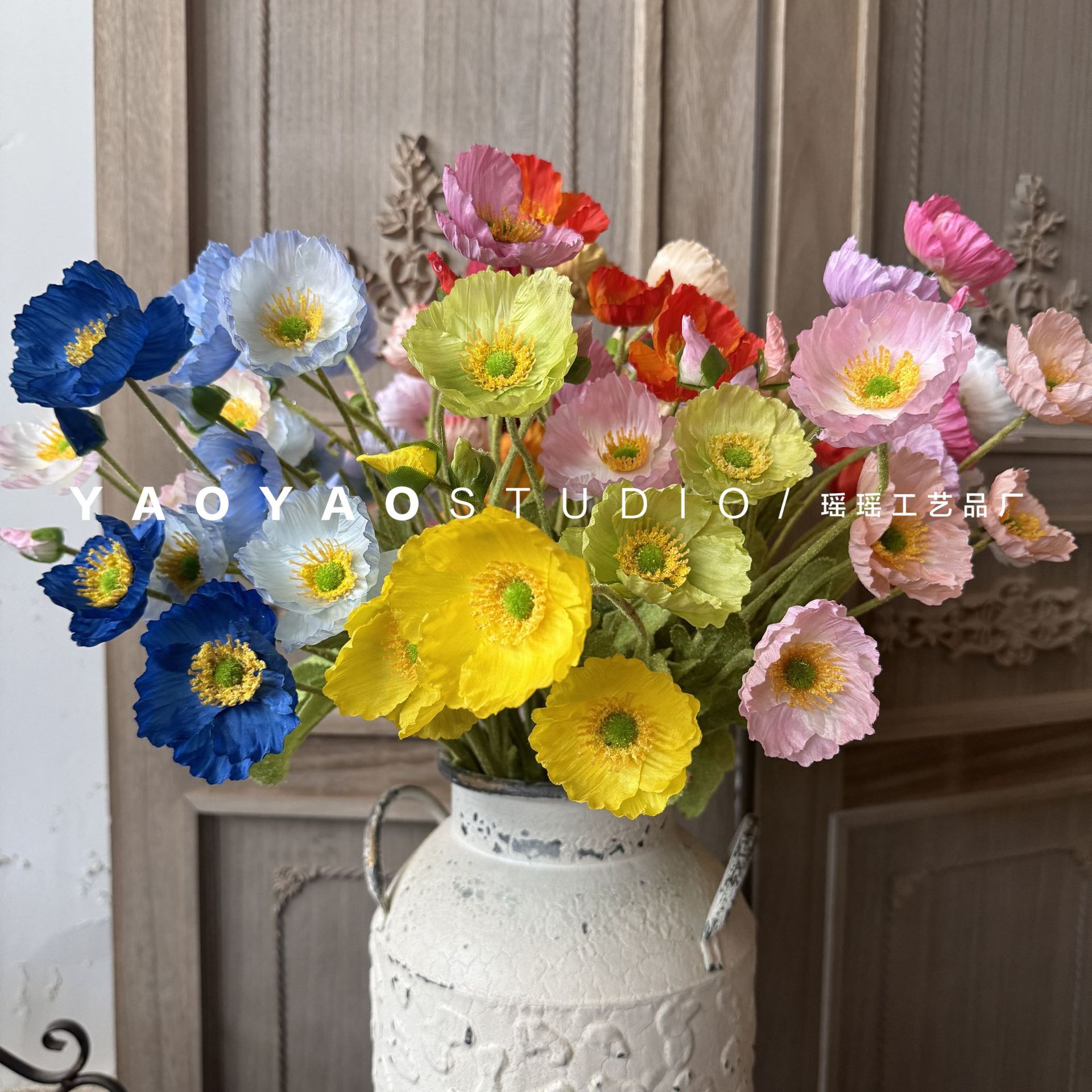 24色! 4頭のコクリコ美人の小さいケシの花の結婚祝いの家の室内の置物の装飾の花の撮影の道具の造花