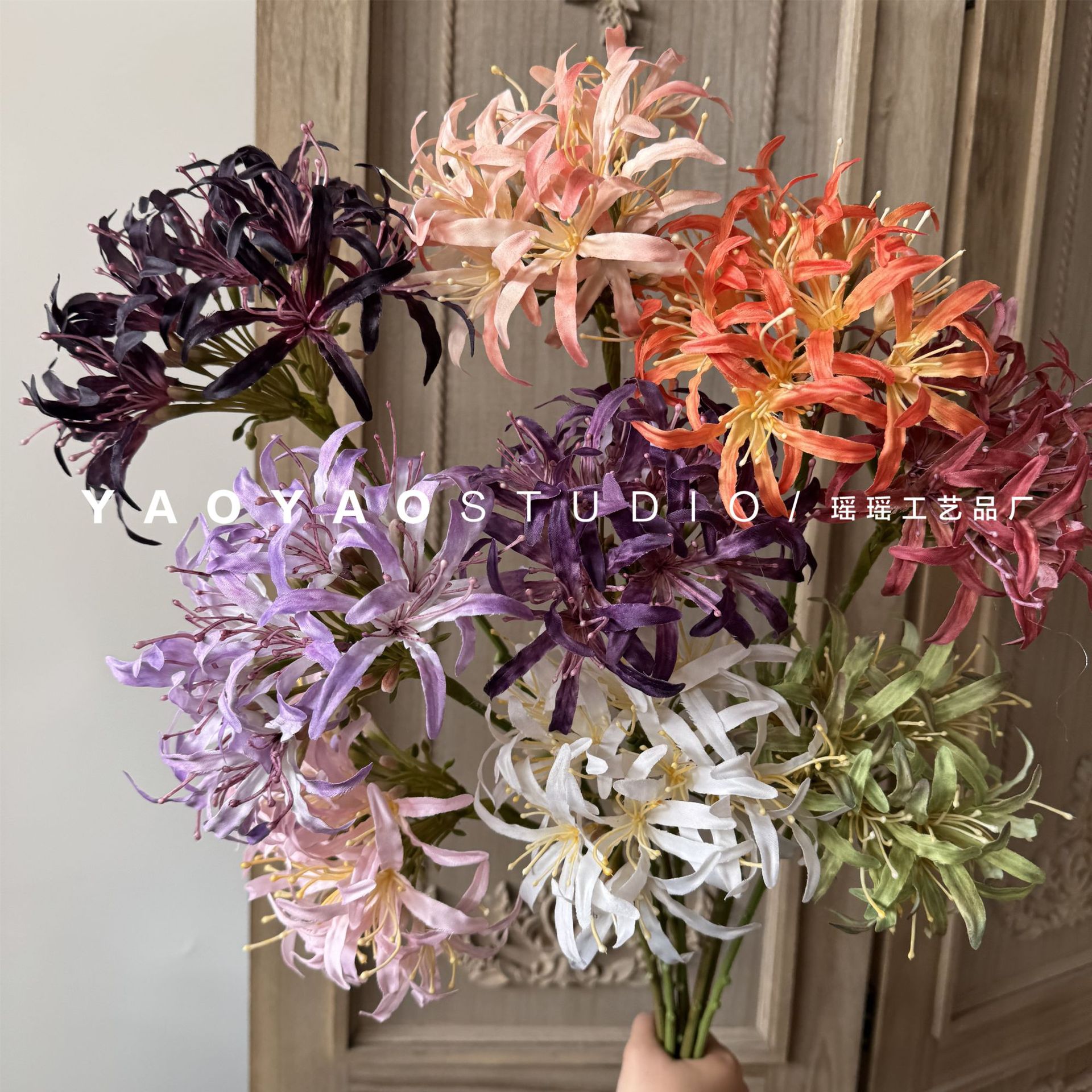 単枝百子蓮彼岸花シミュレーション花古風写真撮影道具影楼服装店の造花手は花の配材を持っています。