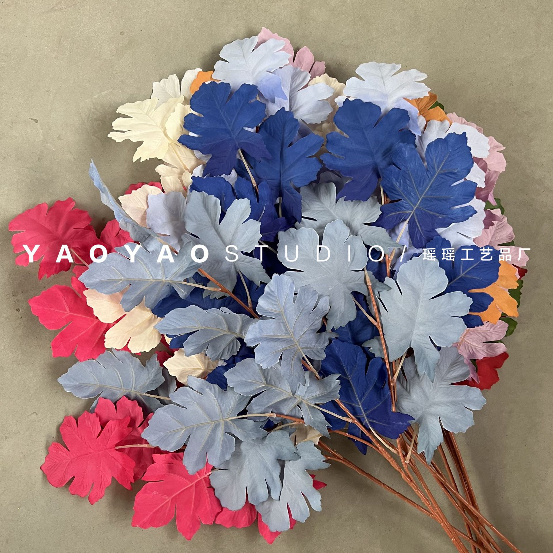 新商品カラーパン葉高枝飾り生け花ギザギザ葉結婚式堂生け花結婚祝い花芸緑植生け花