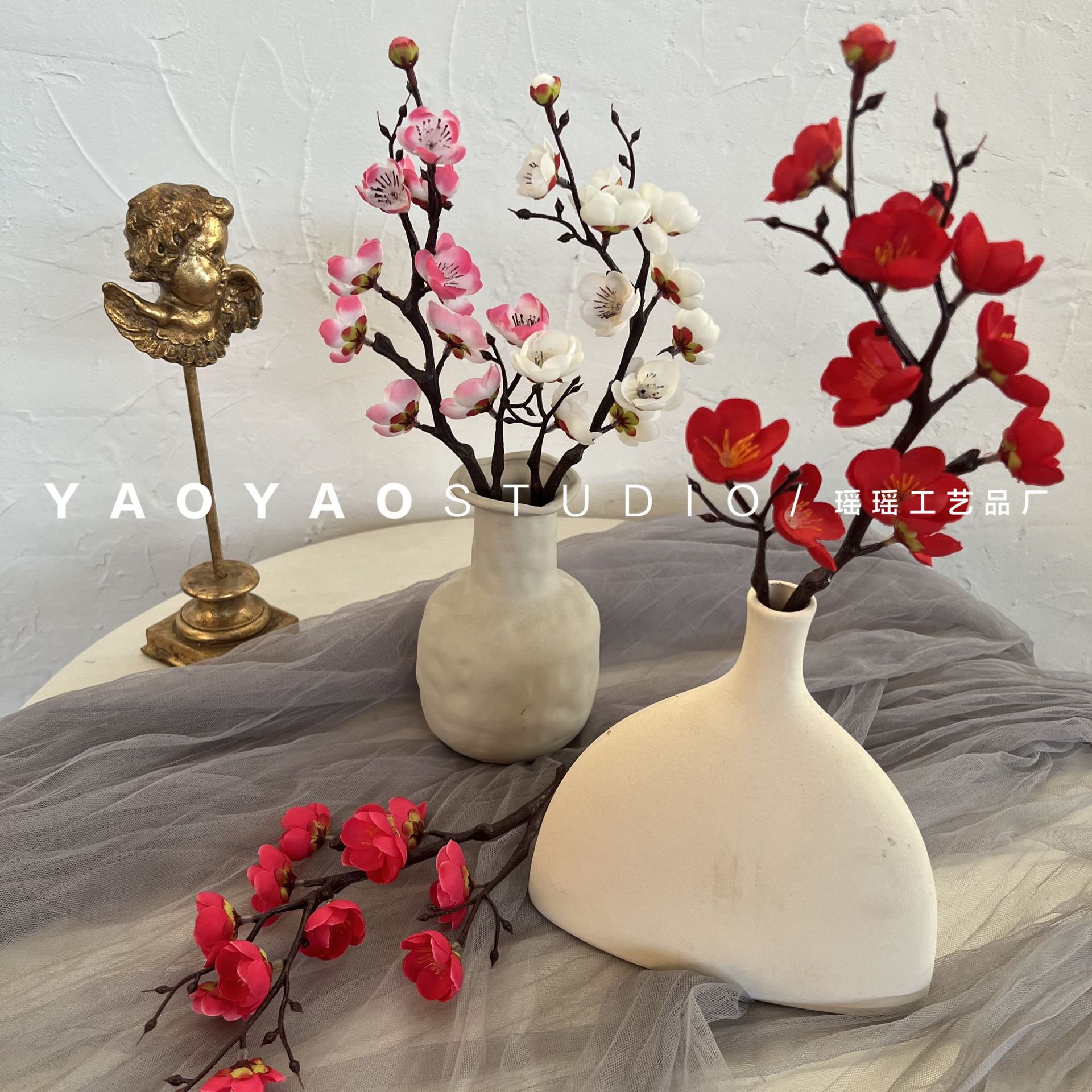 梅の花の盆栽をシミュレーションして生け花します。新年に絹の花を飾ります。