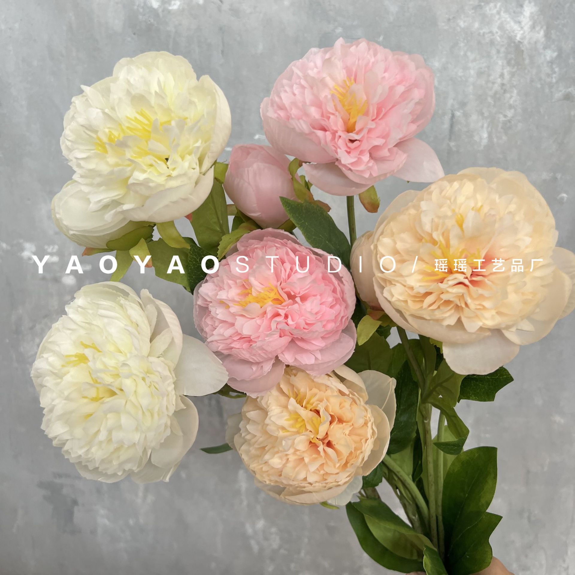富貴の牡丹の花の3頭のシャクヤクの家庭の見本の板の間の装飾の偽の花の重弁シャクヤクの北欧の装飾の花をシミュレーションします。
