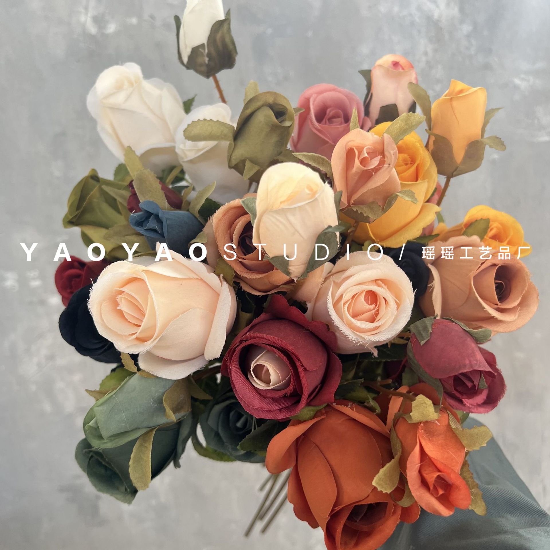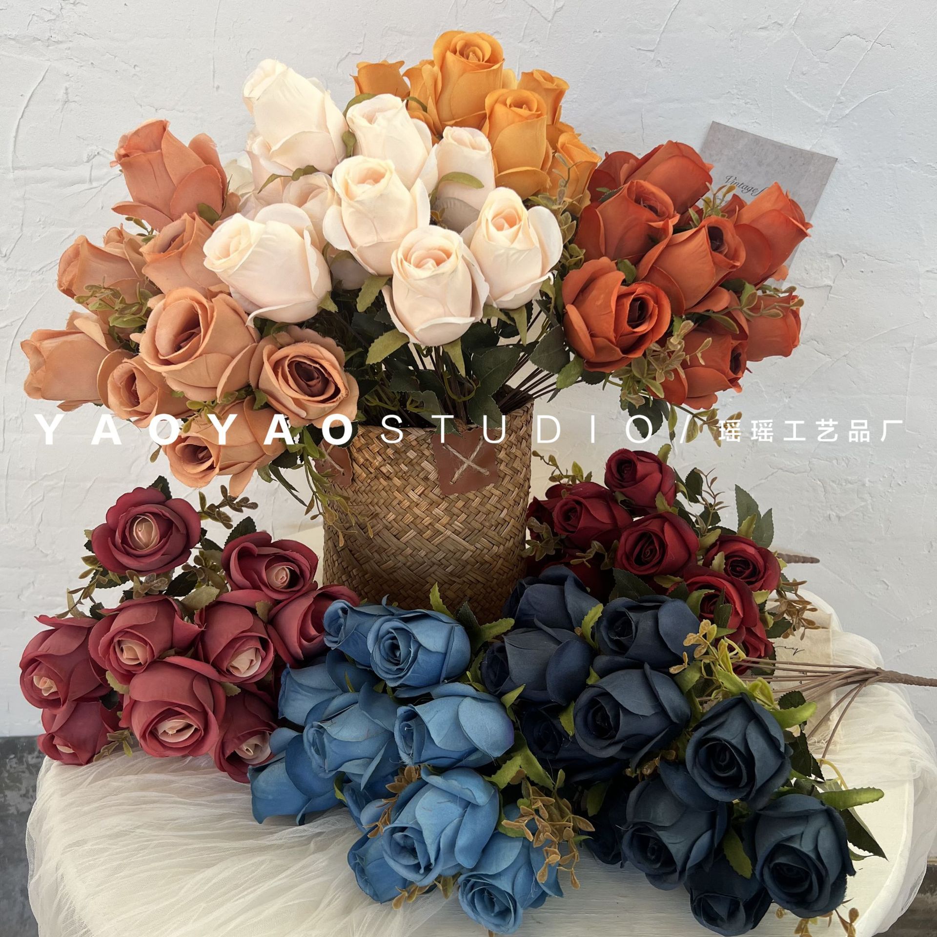 3頭のブルガリアバラ蕾アメリカ式リビングルームのテレビキャビネット装飾花レトロ造花撮影道具シミュレーション花
