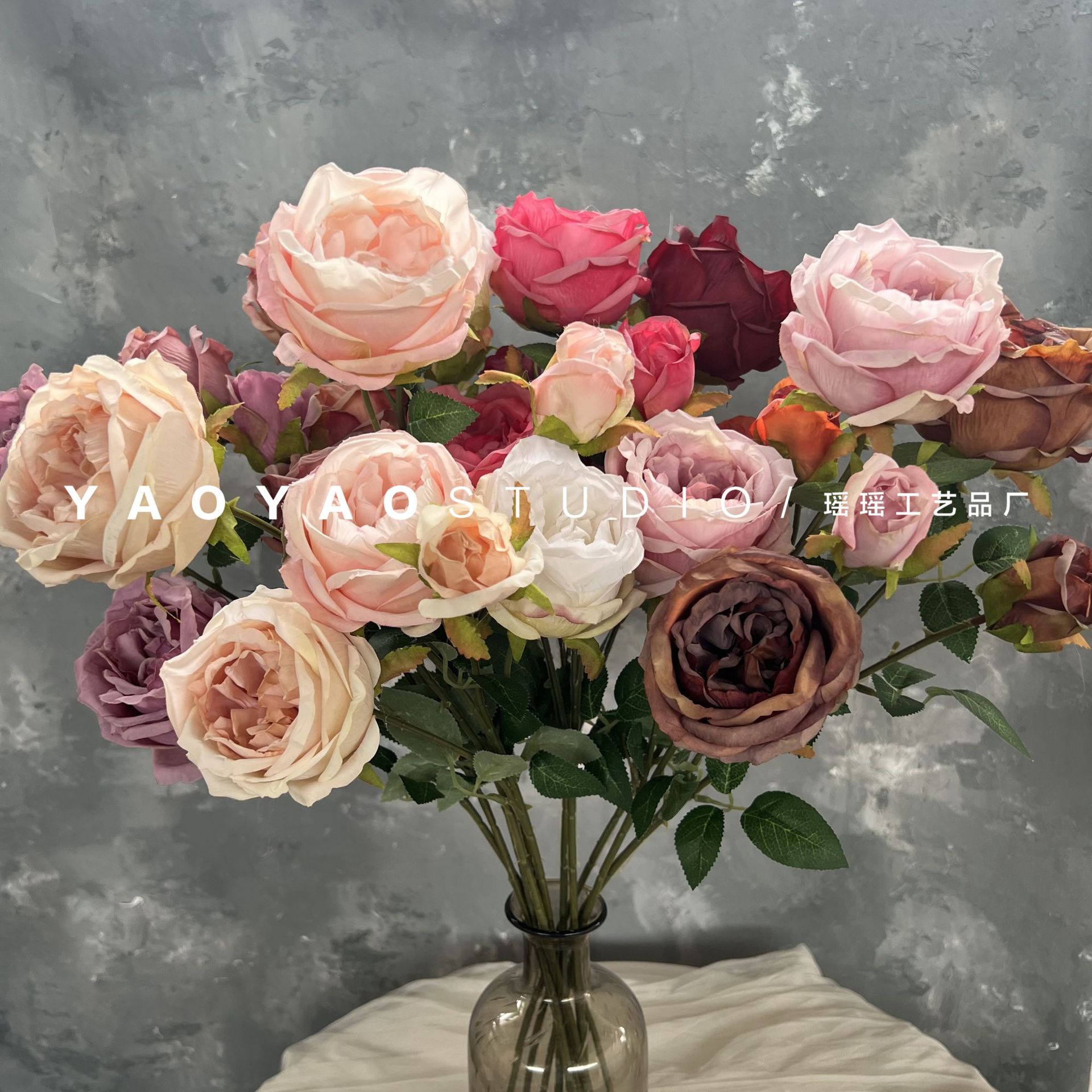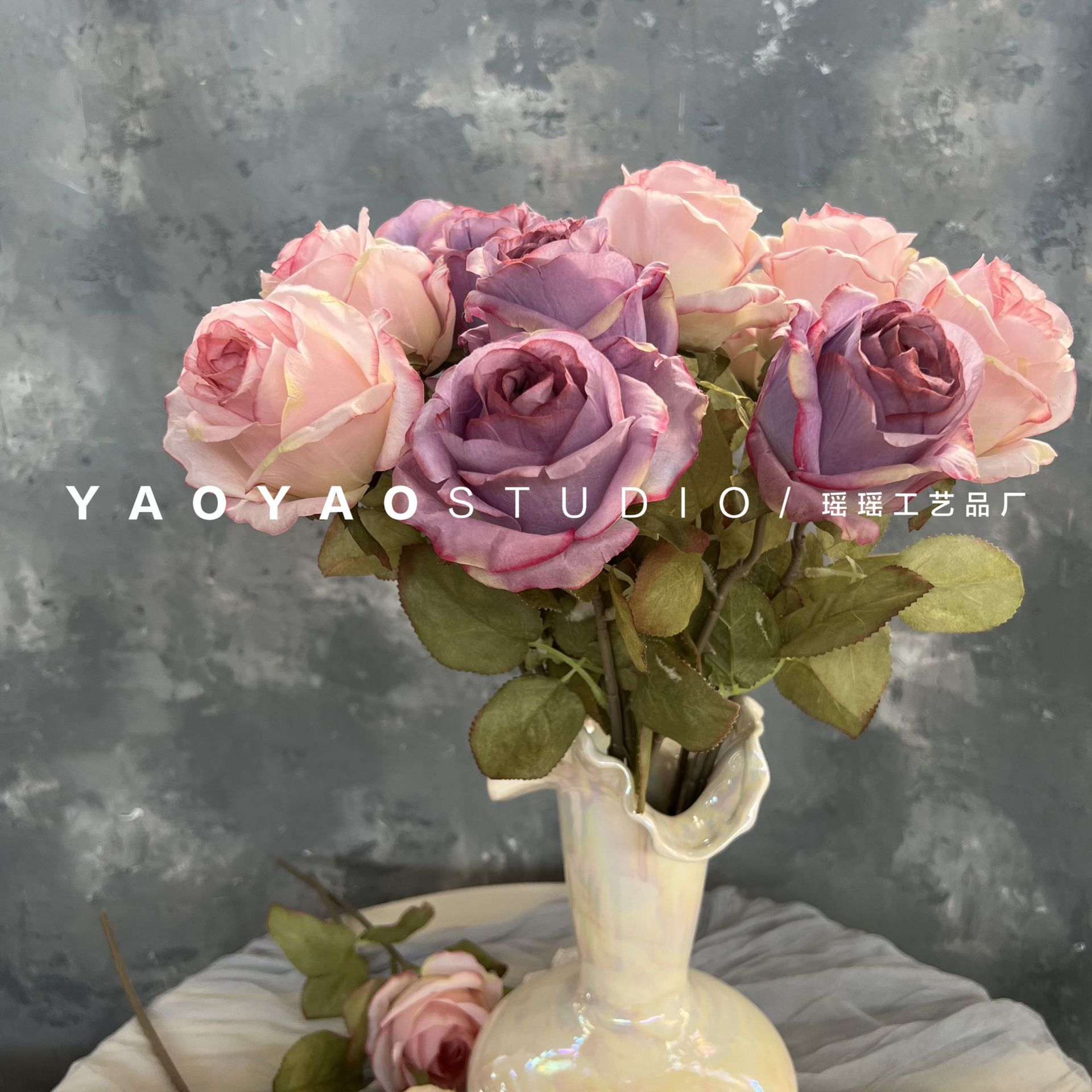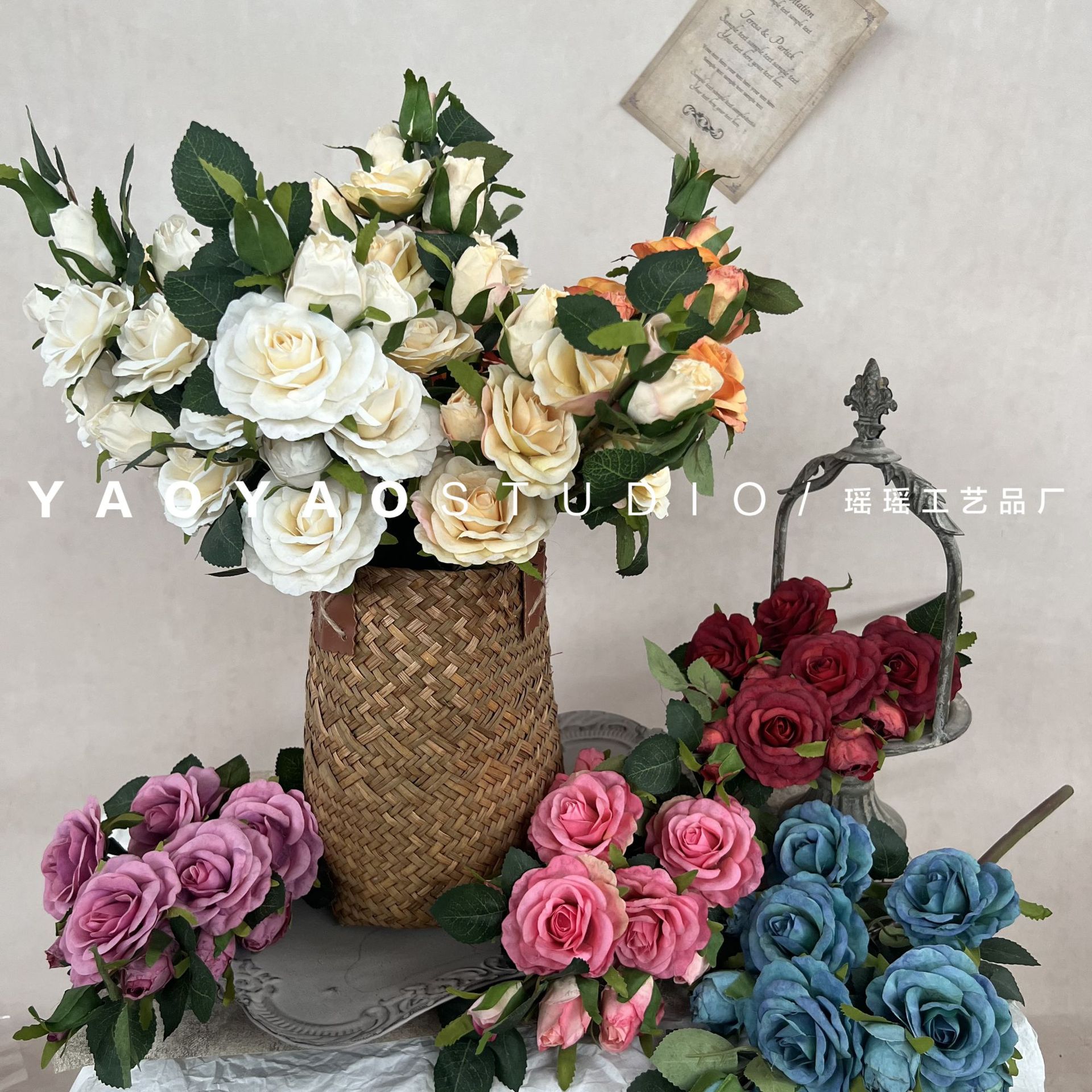 フランスのレトロなバラのシミュレーション花は、ドライフラワーの家のリビングルームに花を飾って道具の花束を撮影します。