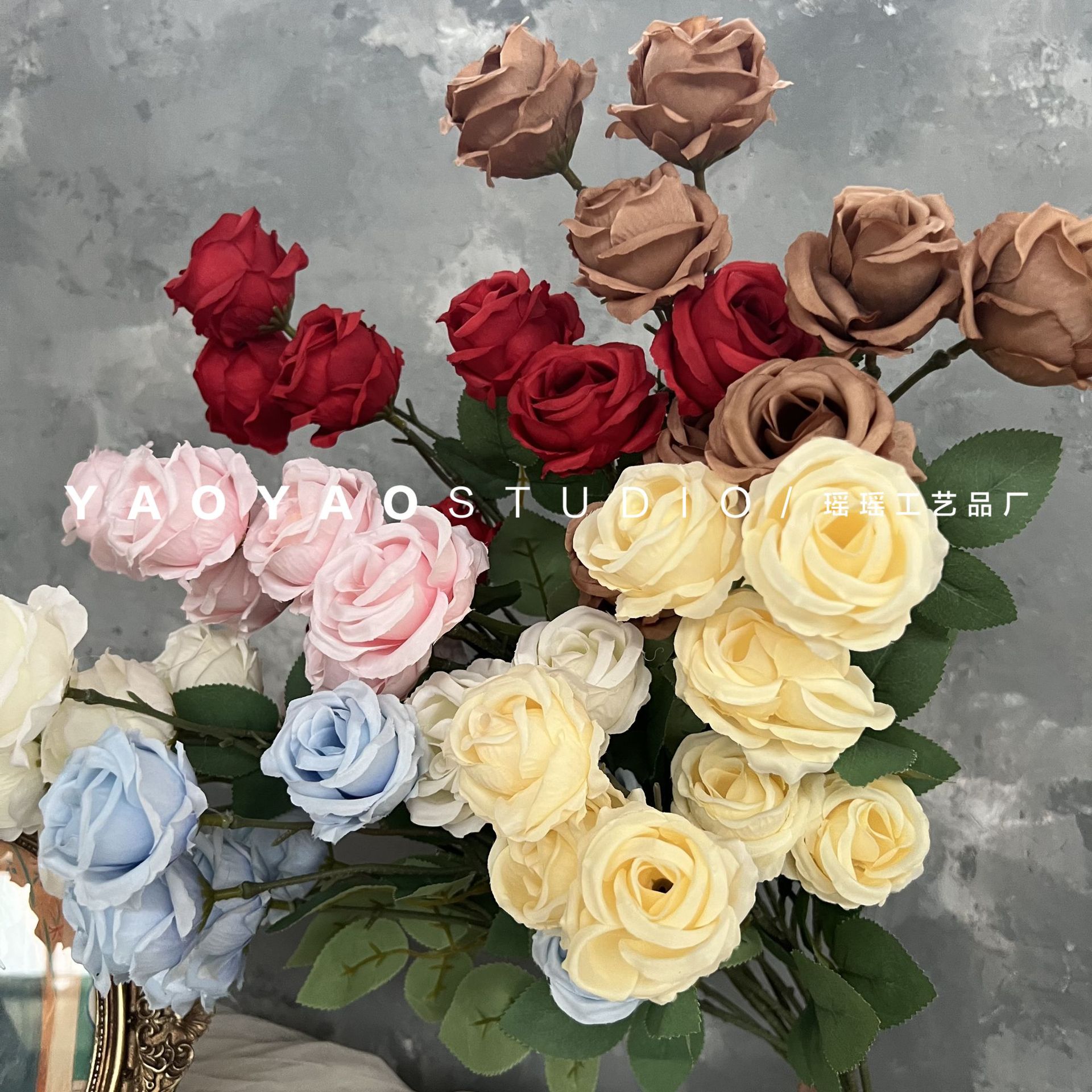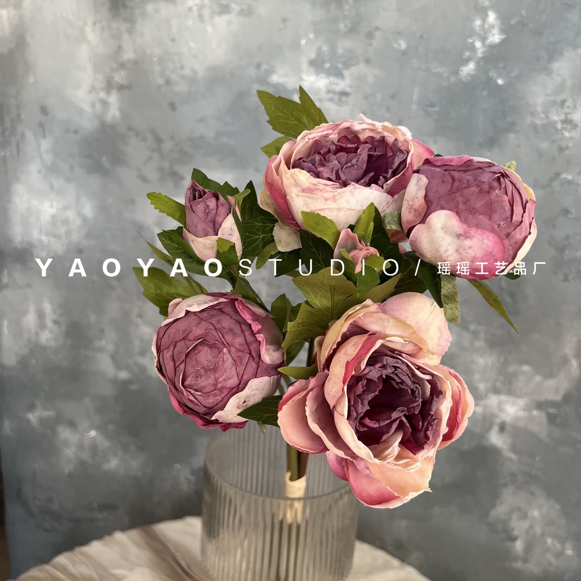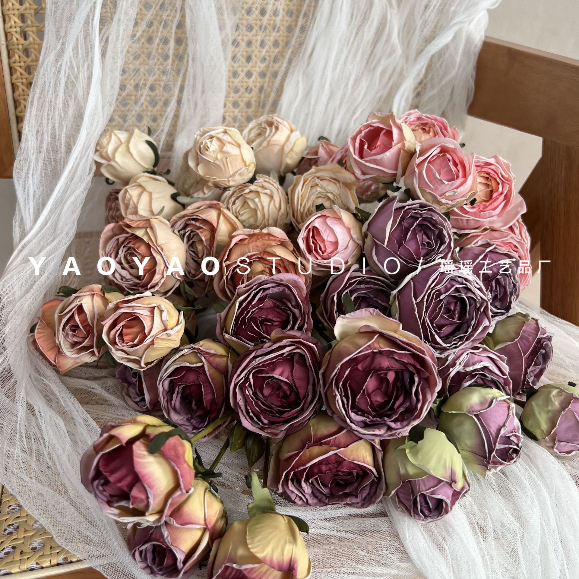 フランスのレトロなバラのシミュレーション花は、ドライフラワーの家のリビングルームに花を飾って道具の花束を撮影します。