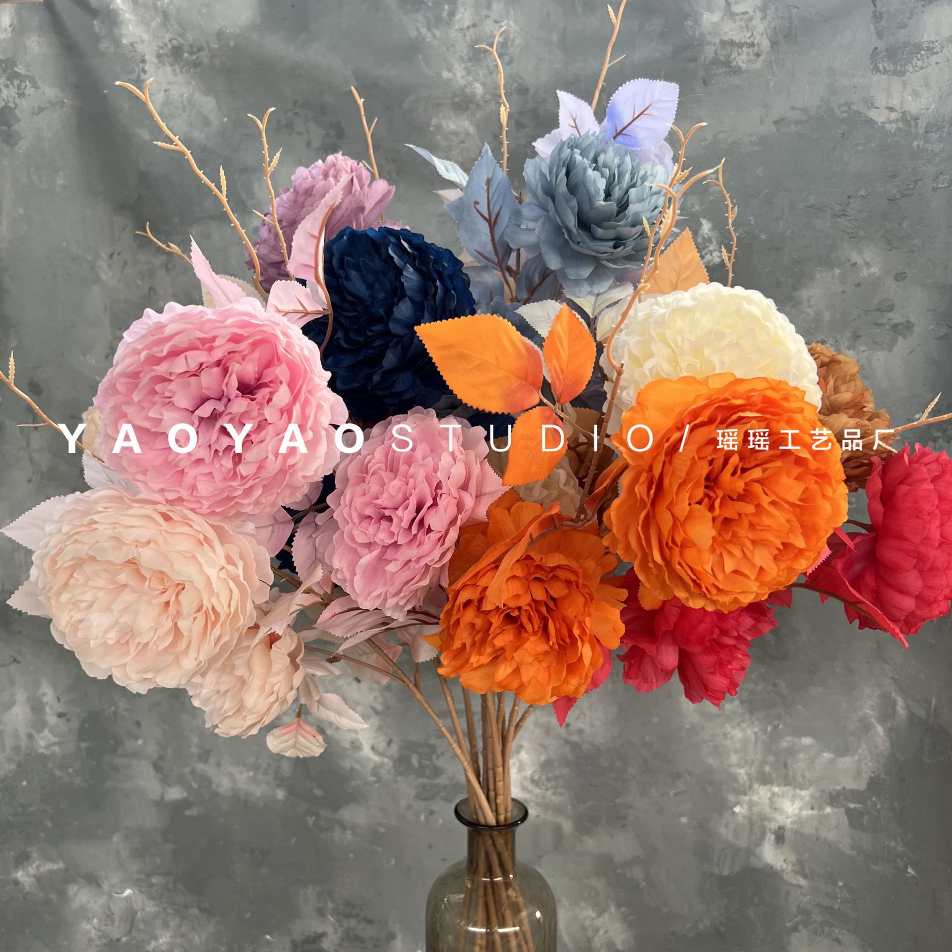 ヨーロッパ風露蓮造花茶枚洋牡丹家庭結婚祝い装飾ソフトリビングに花キンポウゲ山茶花を挿します。