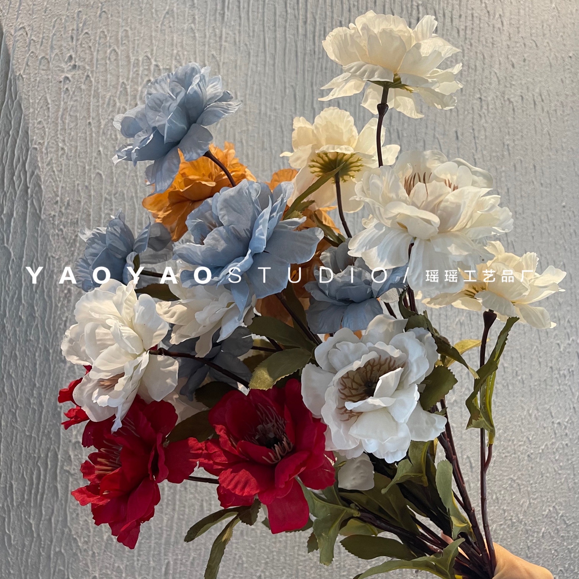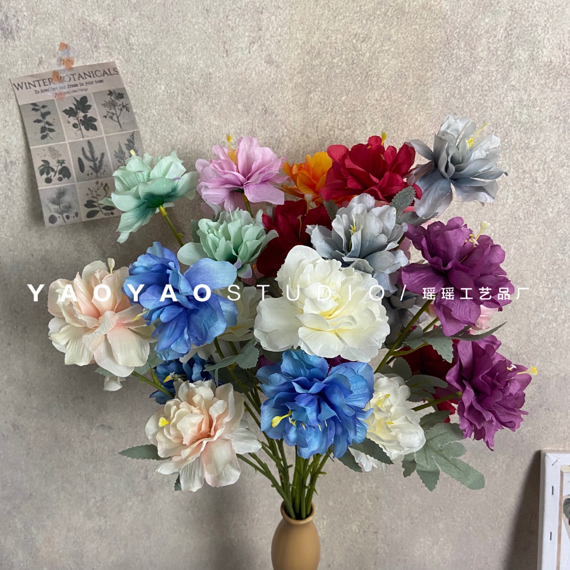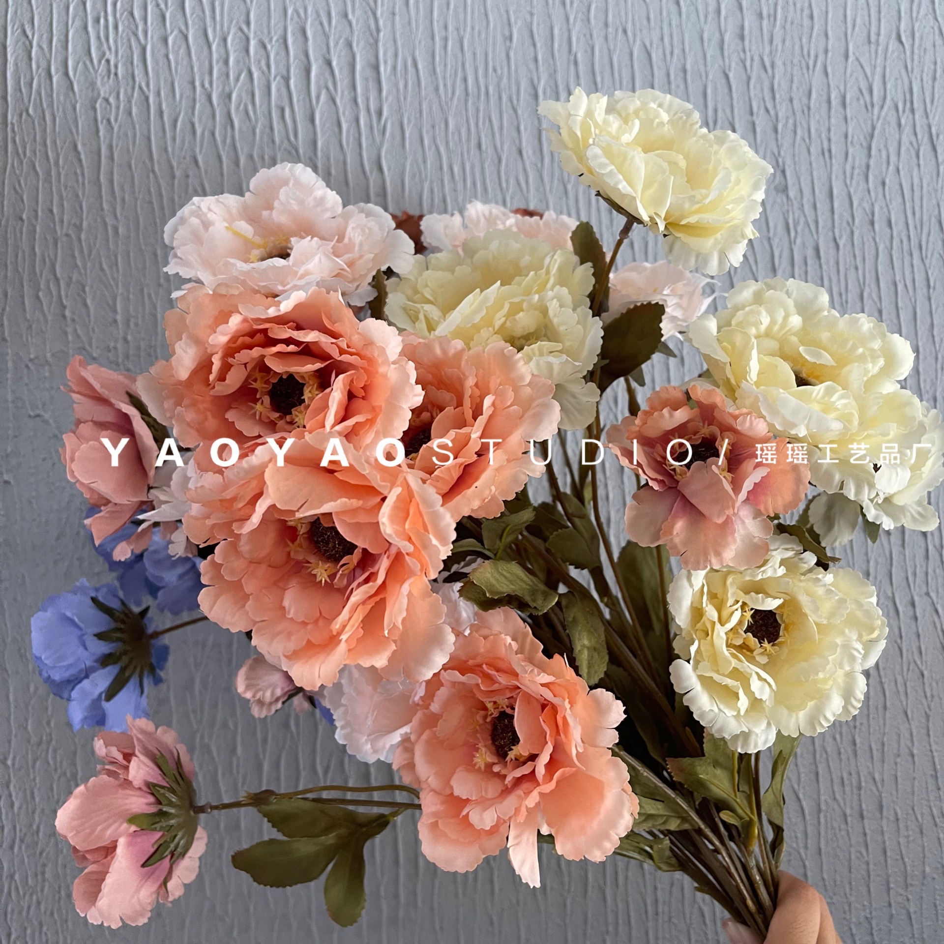 シミュレーション3頭草心牡丹客間装飾花結婚式講堂シミュレーション花材写真道具花造花