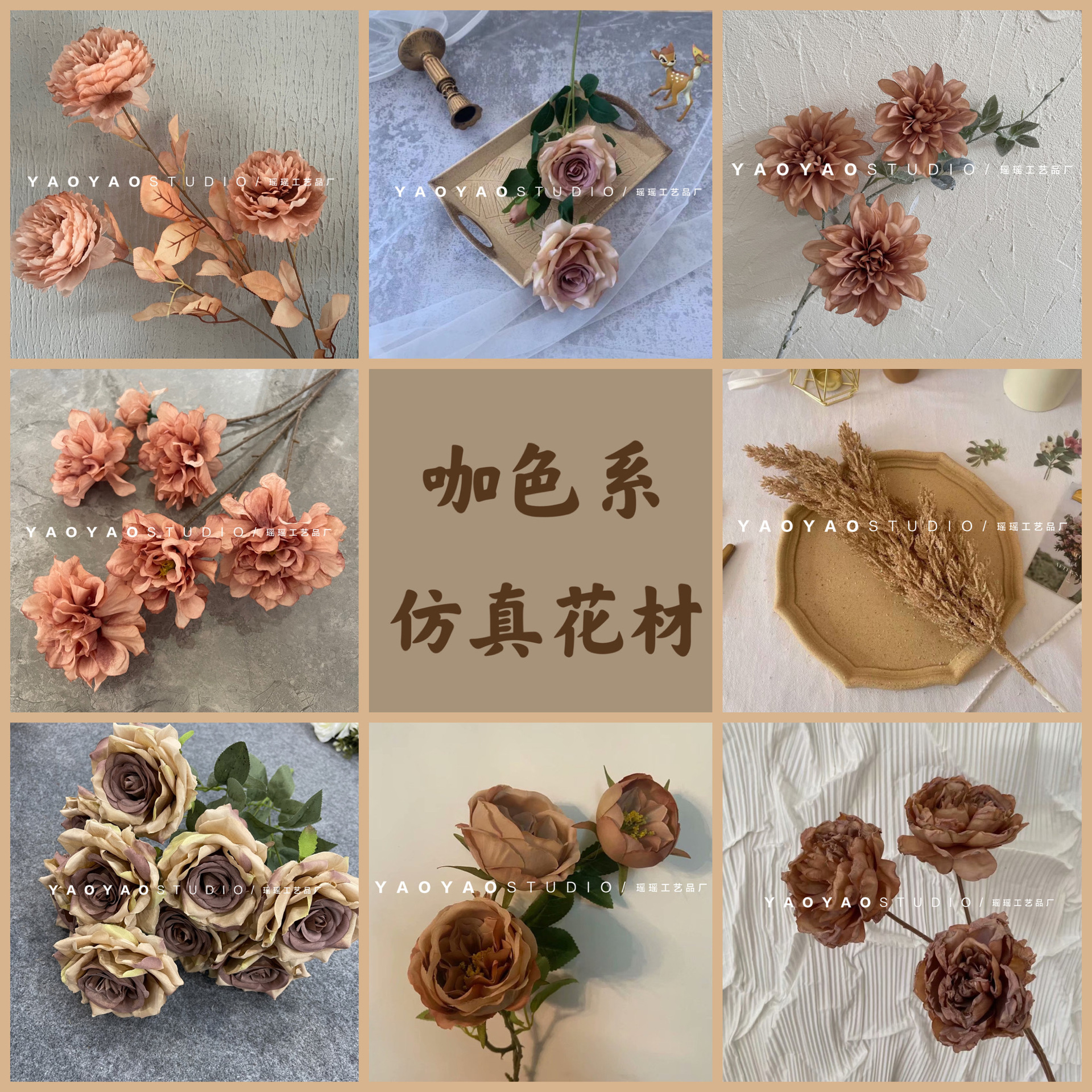 レトロなカレー色のバラの洋牡丹の秋の色は花の結婚祝いの結婚式堂の柔らかい服装の路の花の撮影の道具の造花をシミュレーションします。