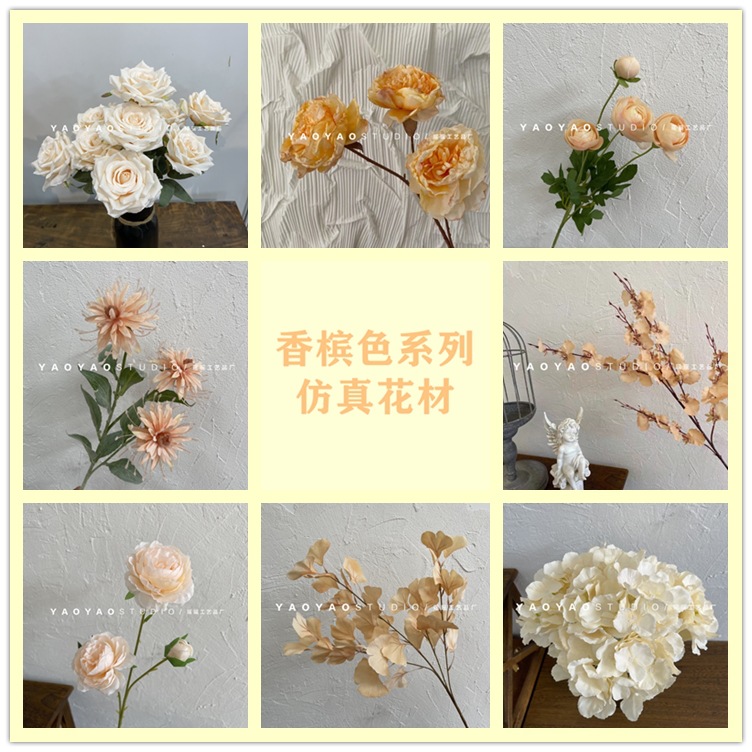 シャンパン色系シミュレーション花結婚祝い花材結婚講堂吊り下げソフトホテルシーン配置路引生け花絹花
