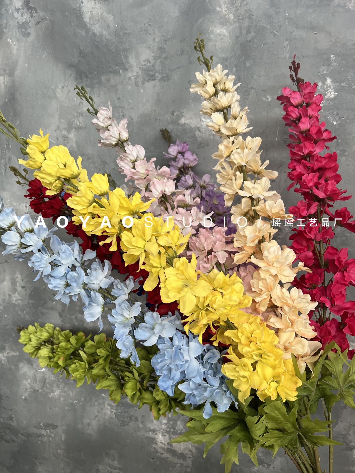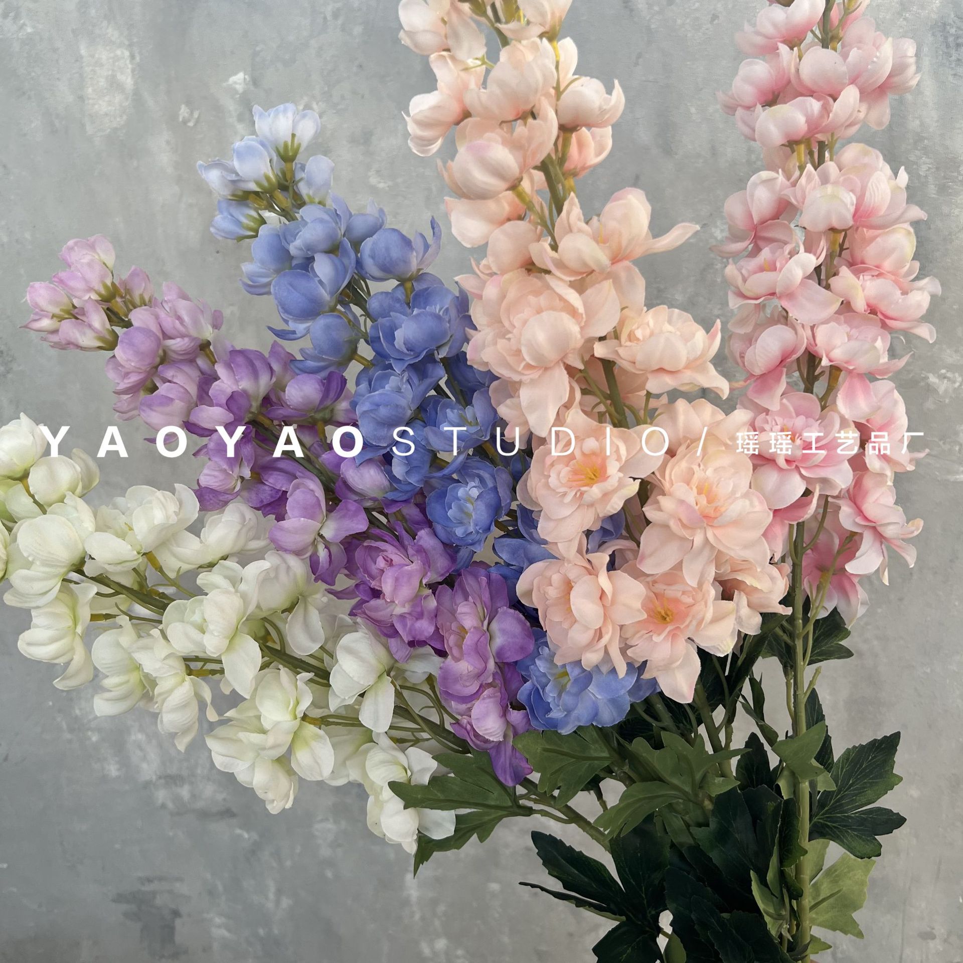 1.2メートルの大きな飛燕草千代蘭の造花結婚式場の花が並んでいます。