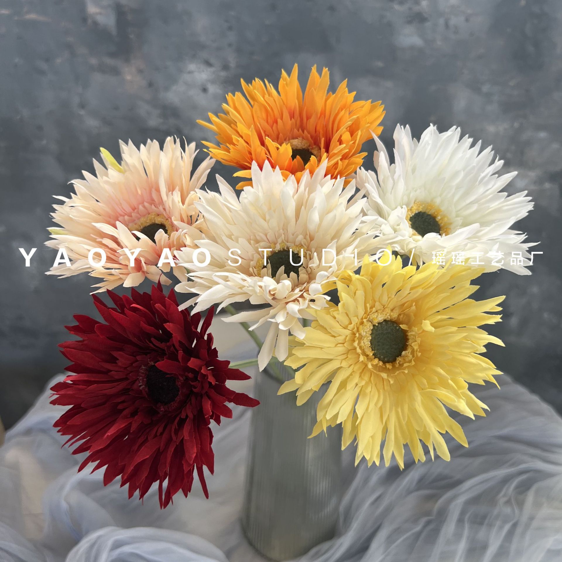 単枝巻きの縁の大きい扶郎のアフリカの菊のシミュレーションの花の偽の花の家の結婚祝いの装飾の花の芸の置物の撮影の道具